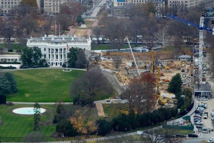 12月9日,美国华盛顿特区,白宫东翼楼宴会厅扩建工程仍在继续。图源:环球网