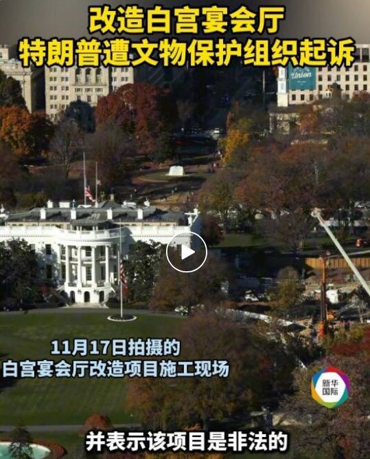 据新华社,12月12日,美国文物保护组织国家历史保护信托基金会起诉美国总统特朗普和数个联邦机构,要求叫停正在进行的白宫宴会厅改造项目,并表示该项目是非法的。